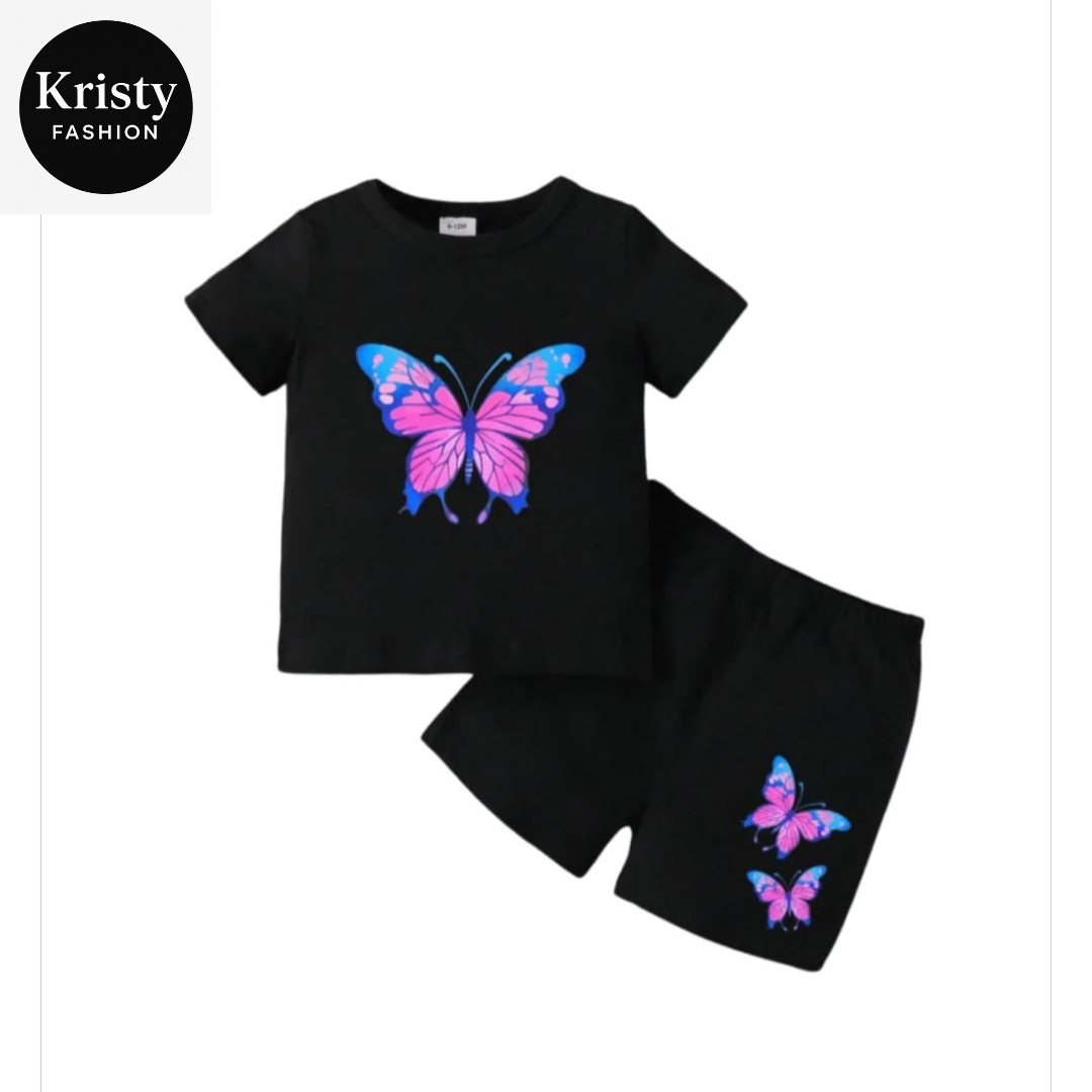 BLACK T-SHIRT WITH BUTTERFLY PRONTED 2PS SET!